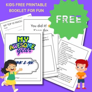 This consists of 4 A4 sheets, which you can then fold together and make a journal, or print them back to back. Kid’s will enjoy filling this in, and they can keep to look back on next year.