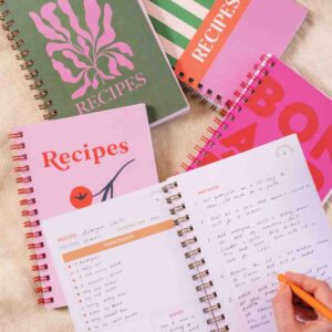 - Pre-made blank recipe book with dividers
