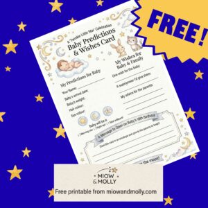 - Our free Twinkle Little Star Predictions Card — download it above and use it as a keepsake game guests fill in and leave for the parents