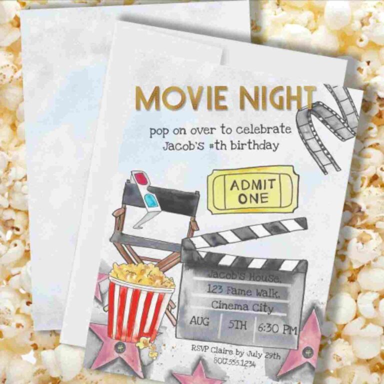 You could make your own invites. As I’m writing this, this Movie clip art is Free – it might be worth checking out, and can make your invites look really good.